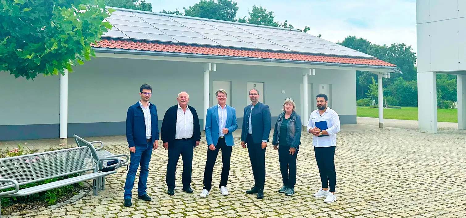 Im Bild (von li. nach re.): Hr. Martin Pichlmeier, stellvertretender Bauamtsleiter, Hr. Fritz Botzenhardt, Referent im Stadtrat für Finanzen und Liegenschaften, Hr. Grulke, Geschäftsführer Stadtwerke Olching, Hr. Erster Bgm. Andreas Magg, Fr. Heide Kuckelkorn, Referentin für Energie, Klima- und Umweltschutz, Hr. Firas Alzaghir, Projektleiter Stadtwerke Olching.